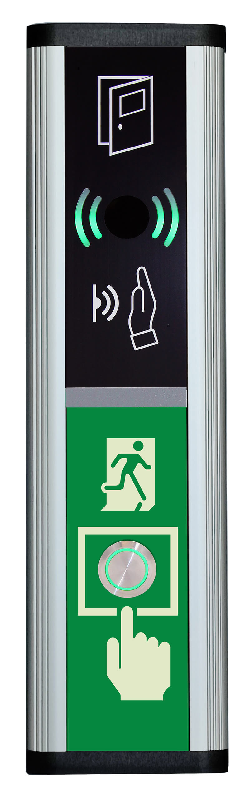 Vid utlöst brandlarm avaktiveras IR-sensorn automatiskt. Funktionen övergår då till den  mekaniska öppnaknappen , vilket säkerställer att dörröppning eller annan styrning alltid kan genomföras — även i kritiska situationer där tillförlitligheten är avgörande.
