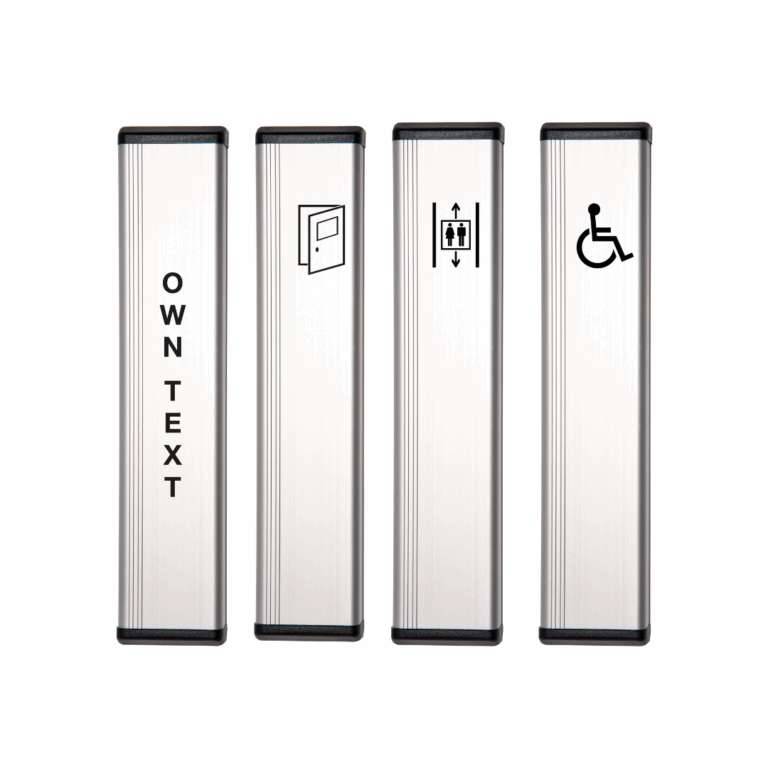 Förtydliga för besökaren vilken typ av dörr eller anordning som armbågskontakten leder till med en tydlig symbol. Välj mellan symbolerna Dörr, Rullstol eller Hiss.
